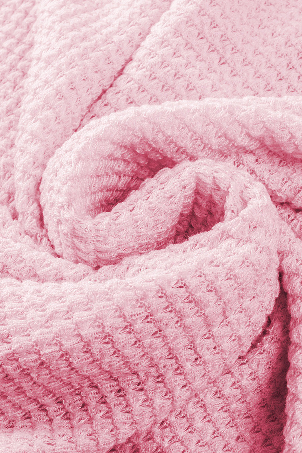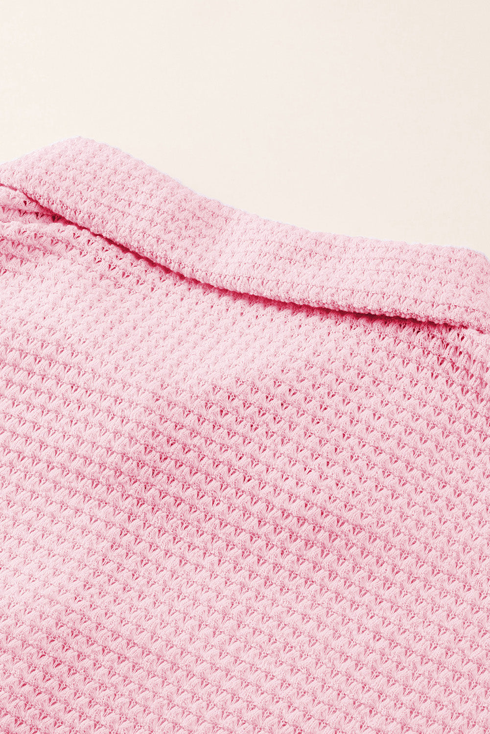 Waffle-Knit Collared Neck Long Sleeve Shirt